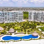 Con vistas al jardín, el *Sun Scape Beachfront Studio By Casa Paraiso* se encuentra a una distancia de 3 km del Mercado 28 en Cancún. Uno de los aspectos más destacados de este apartamento de 45 m^2 es su terraza, desde la cual los huéspedes pueden contemplar las vistas a la piscina.